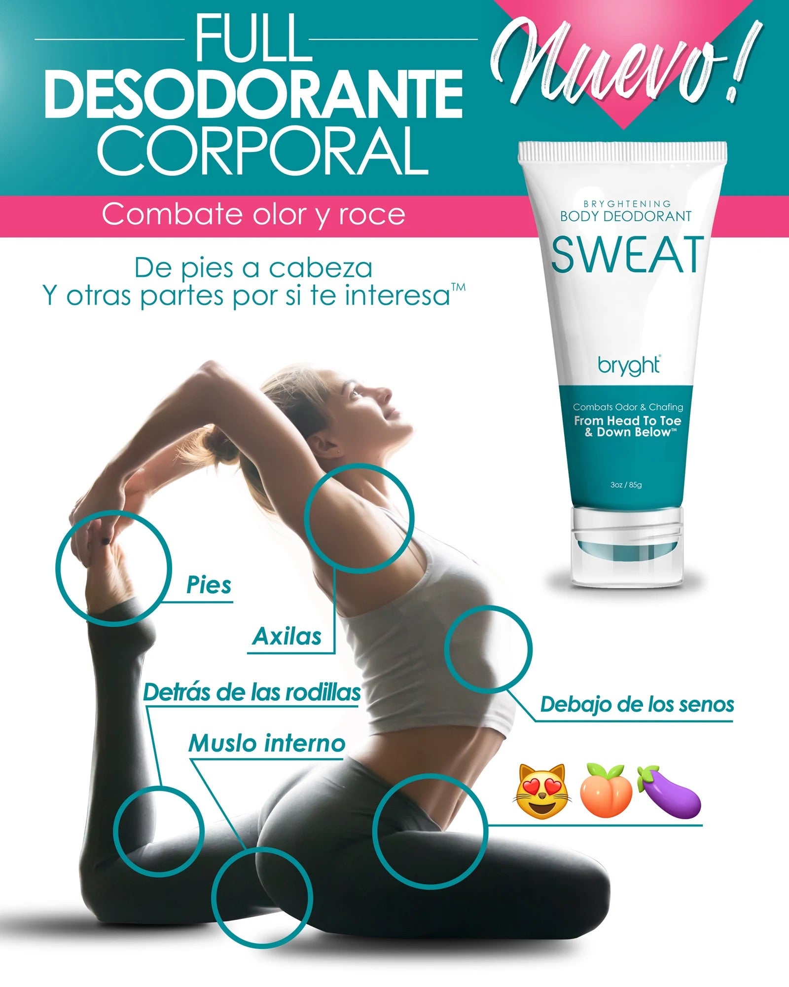 A clean natural, vegan aluminum, talc & essential oil free, multi tasking cream deodorant that keeps every(body) ® part fresh, smooth and confident. Works as a deodorant, an anti chafing cream and a brightening moisturizer for underarms, underboob, back of neck, feet and so much more (insert peach, kitty and eggplant emojis here) . Sweat is for real bodies and real life.
